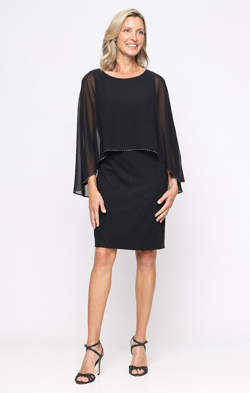 Foil Trim Asymmetrical Chiffon & Jersey Popover Cape Dress