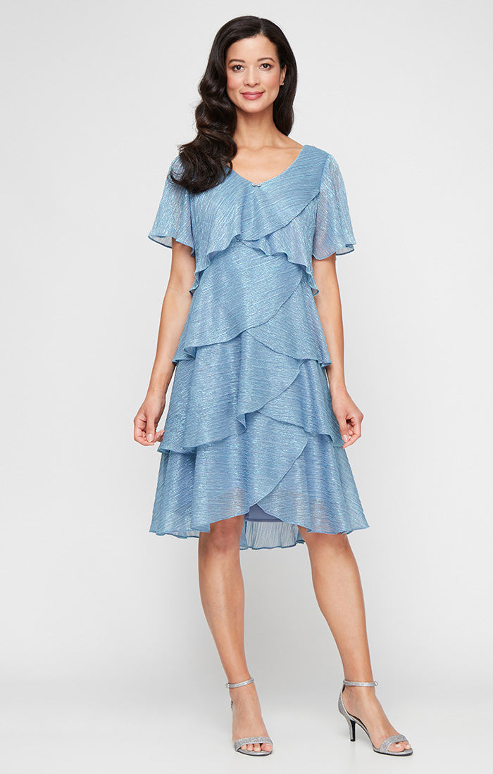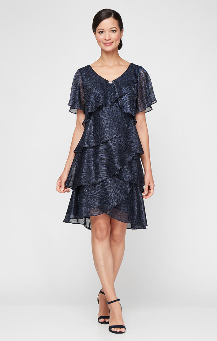 Shimmer Bodre Chiffon Tiered Cocktail Dress