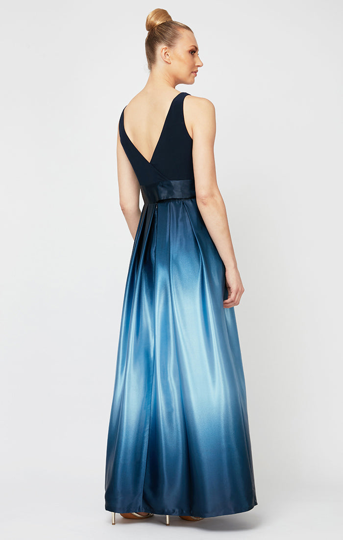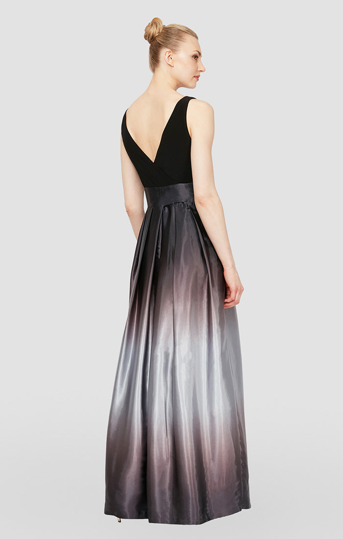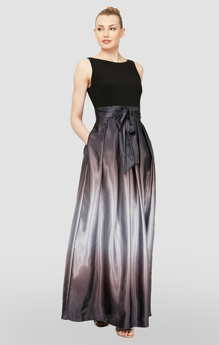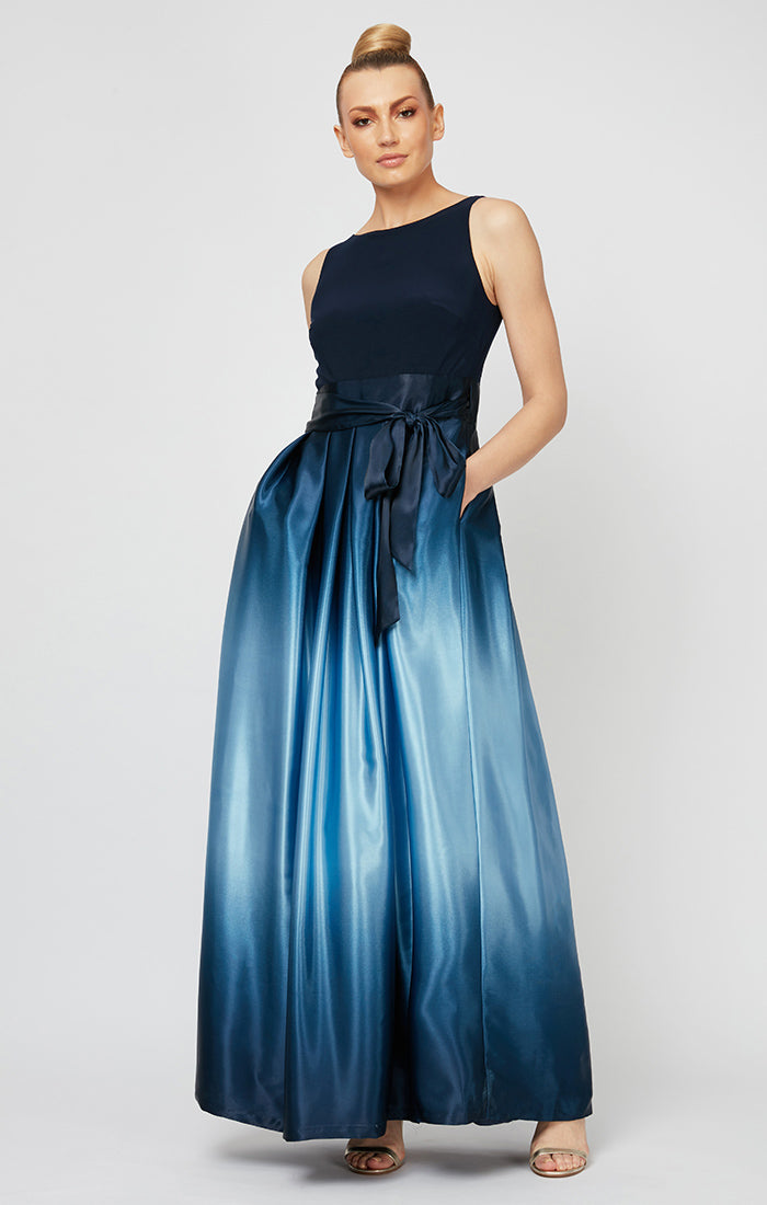 Sleeveless Gown with Satin Ombre Skirt & Tie Belt
