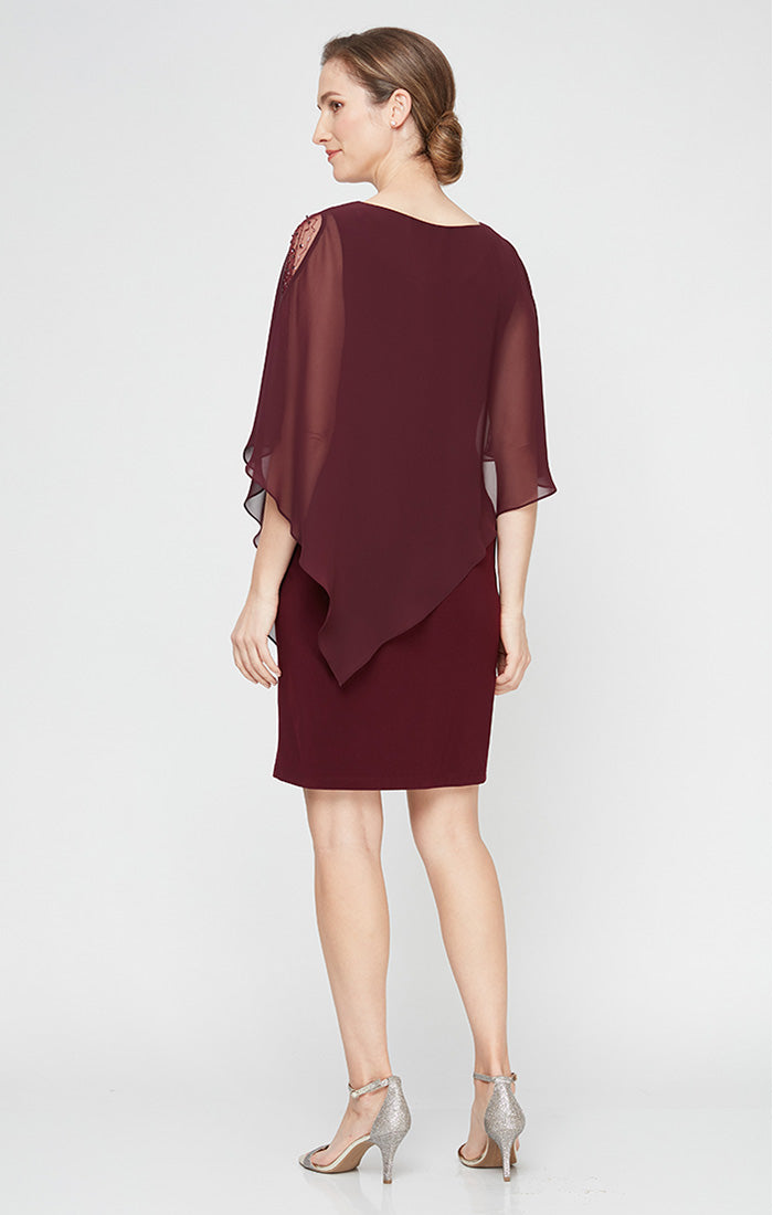 Petite Short Sheath Dress With Embellished Illusion Panel Detail Asymmetric Popover Bodice