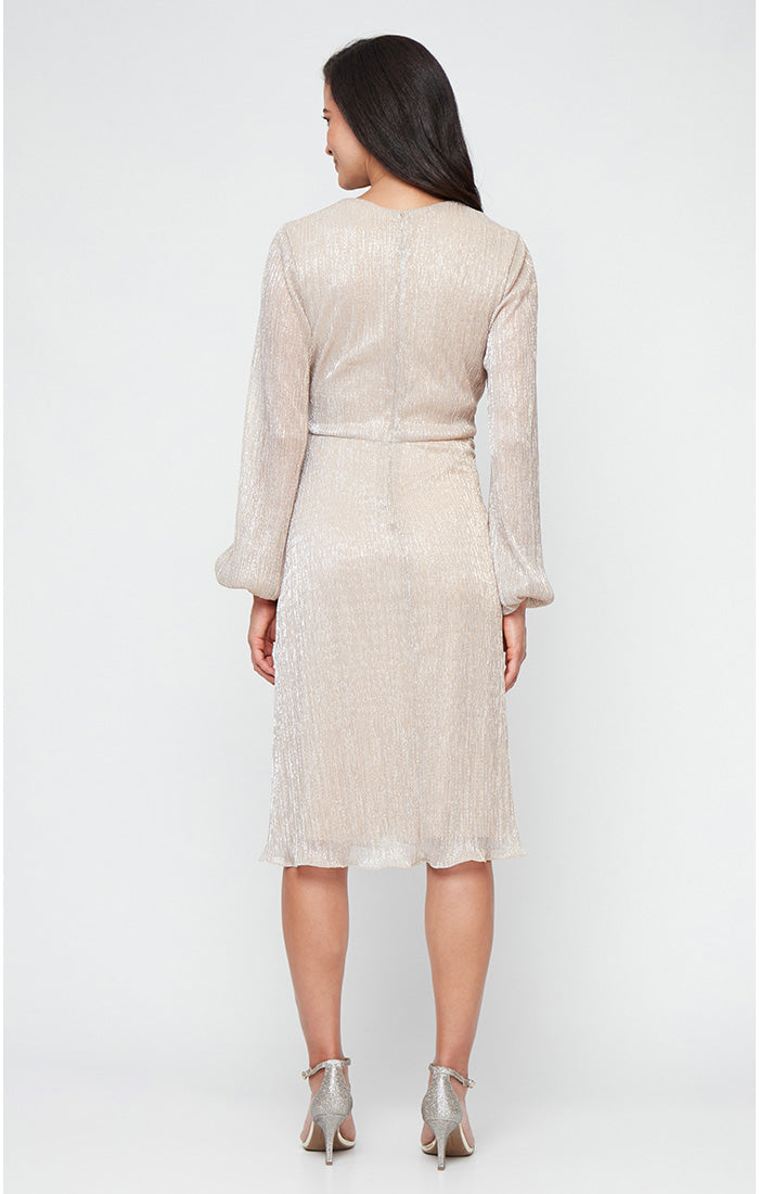 Tea Length Dress with Surplice Neckline and Knot Front Detail