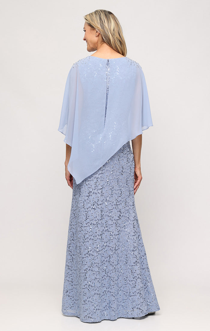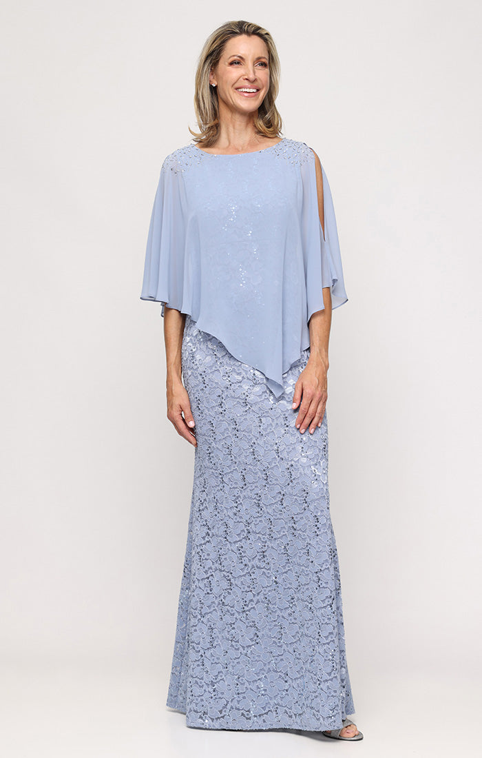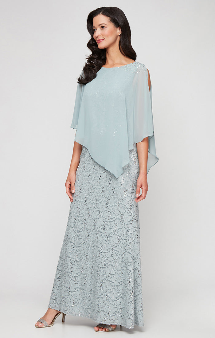 Long Popover Dress With Beaded Shoulder Detail and Asymmetric Overlay