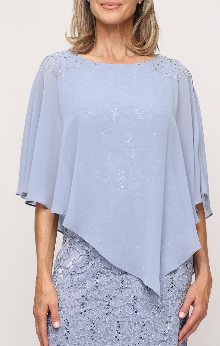 Popover Dress With Beaded Shoulder Detail and Asymmetric Overlay