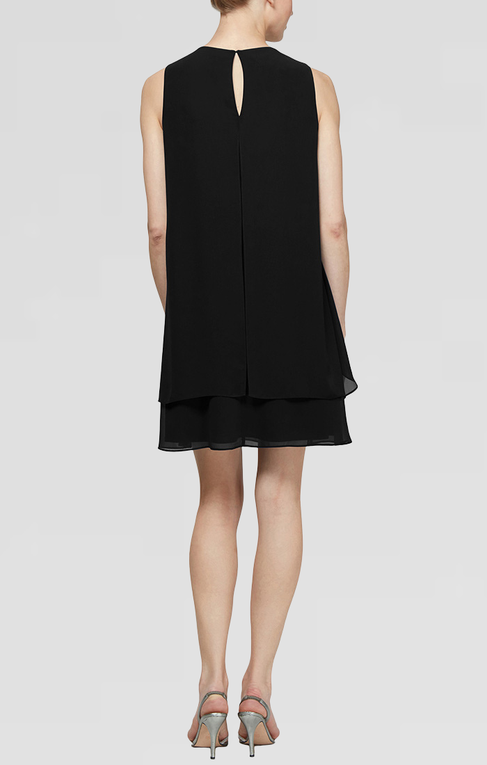 Regular - Chiffon Cocktail Dress with Cutout Neckline and Pearl Trim Detail
