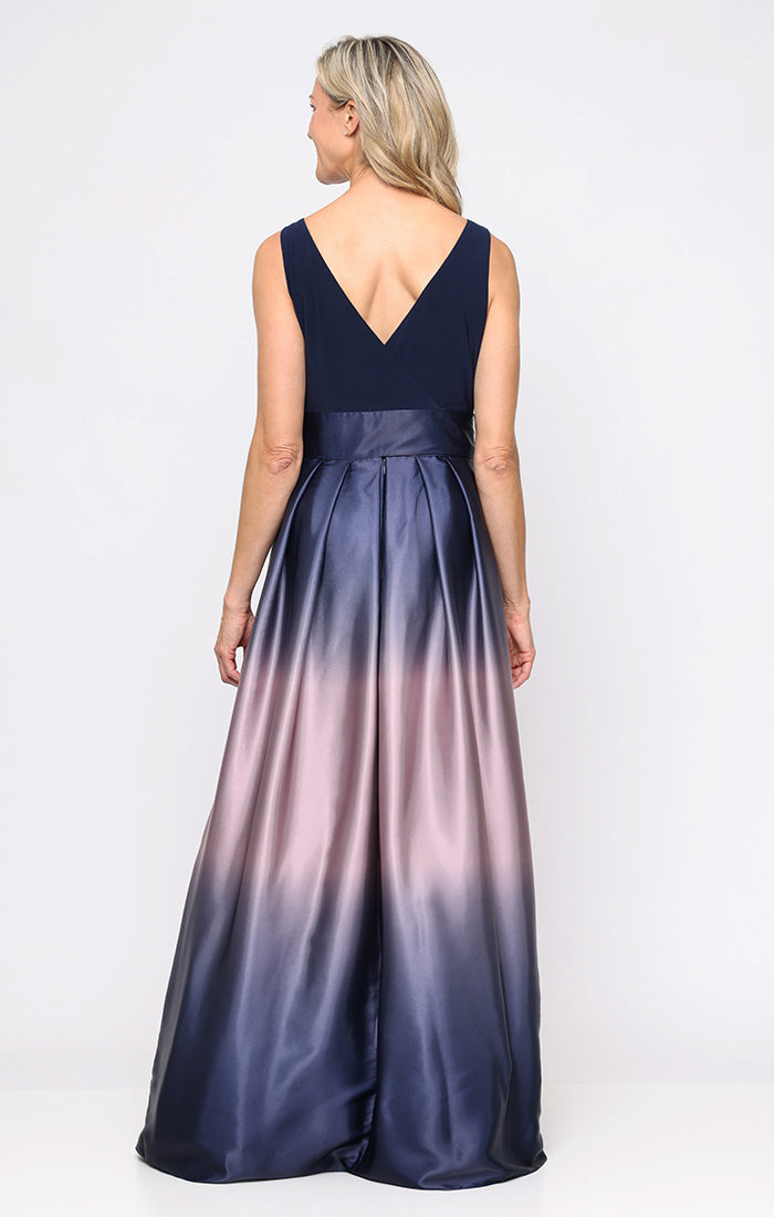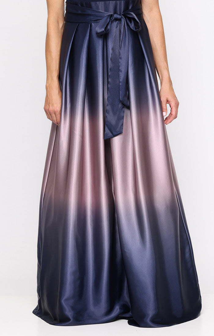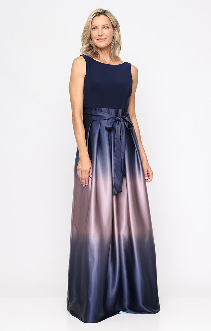 Sleeveless Gown with Satin Ombre Skirt & Tie Belt