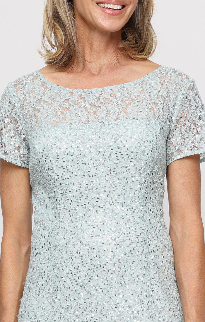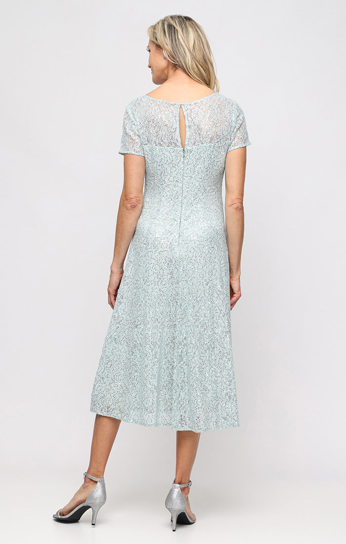 Cap Sleeve Tea Length Sequin Lace Dress