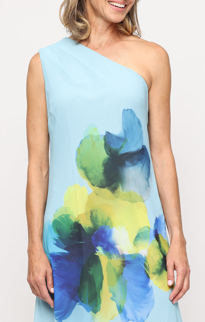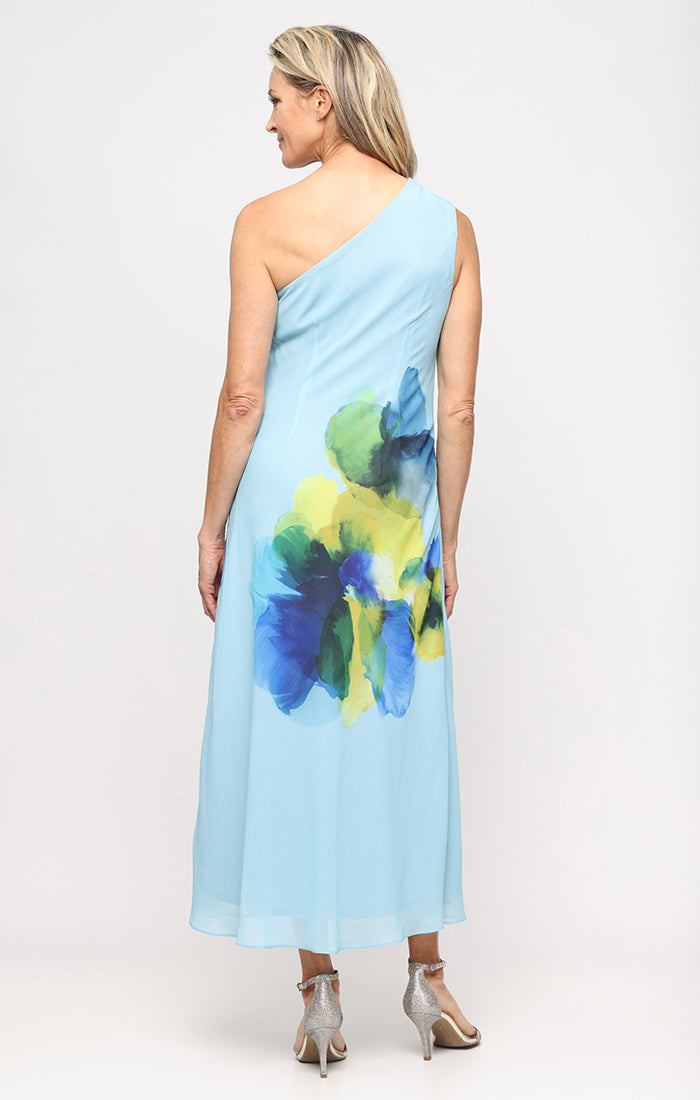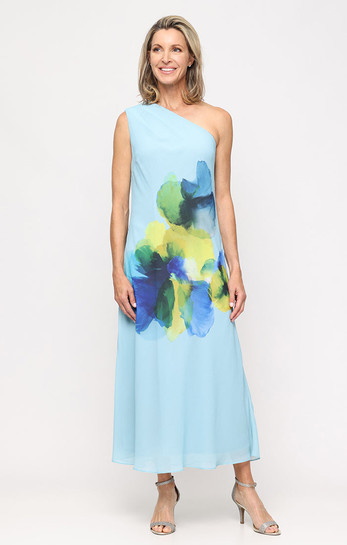 Long Printed Chiffon One Shoulder Dress