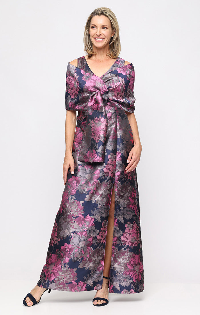 Turn heads in this stunning long printed jacquard dress that's equal parts elegant and fun. The flattering surplice neckline creates a gorgeous silhouette, while the coordinating shawl adds an extra layer of sophistication—perfect for dressing up any occasion. Rich jacquard patterns and flowing fabric make this piece a wardrobe essential that feels as good as it looks.